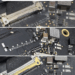 Após vários testes, identificamos que o problema real estava em uma pequena placa auxiliar, responsável pela conexão do teclado e do trackpad.