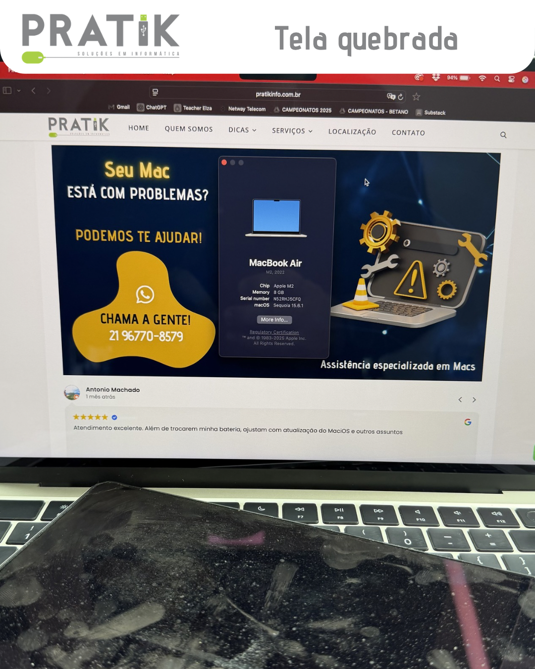 MacBook Air (M2, 2022 – A2681) – troca de tela
