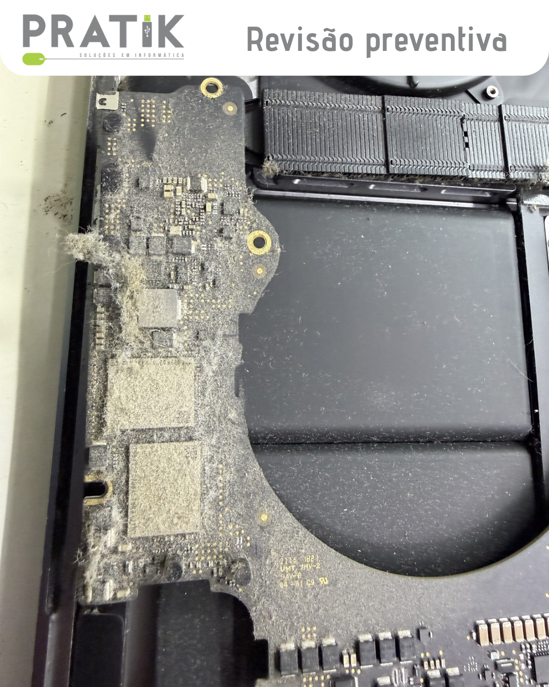 Assim como um carro precisa de revisões periódicas, mesmo funcionando normalmente, o seu Mac também precisa de manutenção preventiva. Muita gente acha que, por estar ligando e funcionando bem, não há necessidade de abrir o aparelho — mas isso é um erro comum. A partir de 2016, os MacBooks passaram por mudanças no design interno, o que favorece o acúmulo de poeira, principalmente nas laterais e no sistema de ventilação. Com o tempo, essa sujeira compromete a refrigeração, aumenta a temperatura e pode até causar falhas na placa lógica. Nesse caso, realizamos a limpeza completa e revisão interna, prevenindo problemas e garantindo mais desempenho e vida útil ao equipamento ⚡