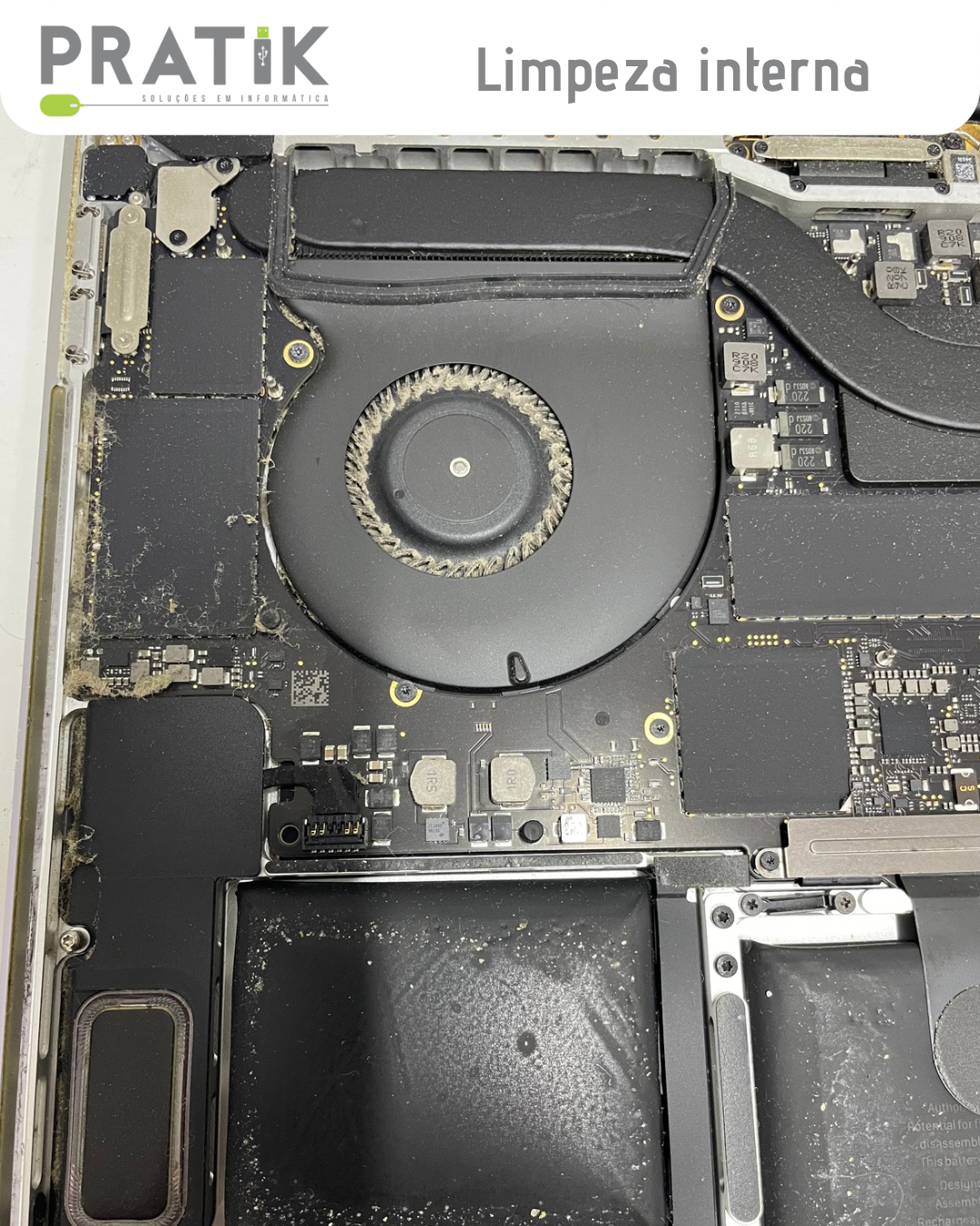 💡 Para evitar esse prejuízo, faça uma revisão interna anual em uma assistência técnica especializada. Assim, você mantém o desempenho e prolonga a vida útil do seu MacBook.