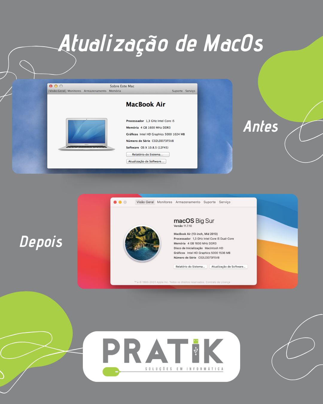 Esse Mac nunca tinha sido atualizado desde a compra! Mais de 10 anos rodando a mesma versão original do macOS (10.8). O problema? Muitos softwares já não eram compatíveis, navegadores desatualizados e até para navegar na internet estava difícil. 👉 Solução: fizemos backup completo dos dados, formatamos o HD e instalamos a versão mais atual suportada para o modelo — macOS Big Sur (11).Resultado: Mac atualizado, seguro e pronto para uso novamente. 🚀