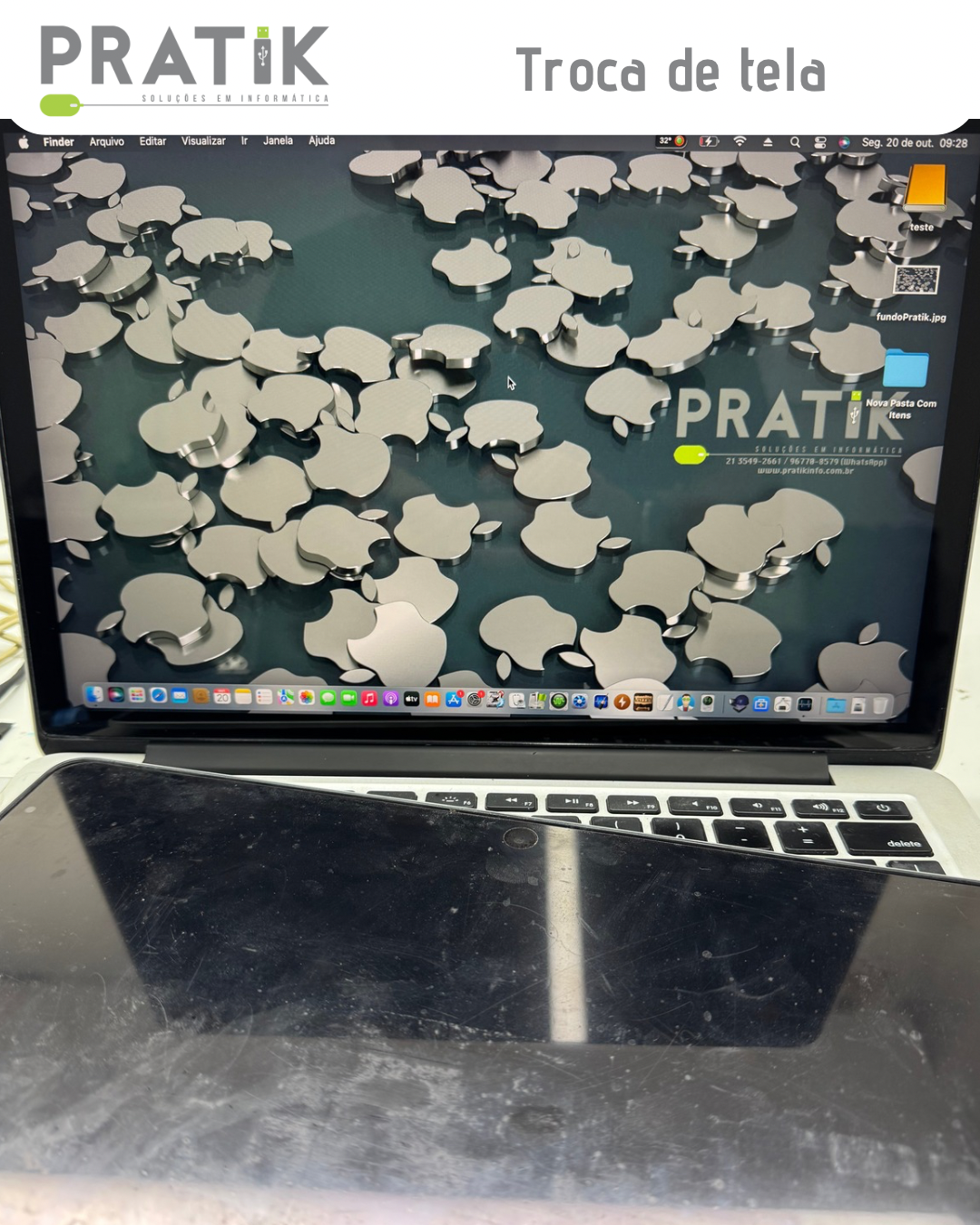 Esse é um problema bem comum nos modelos de MacBook Pro 2016 e 2017, conhecido como “Flexgate”. 💥 O sintoma: a tela apaga quando o Mac é aberto além de certo ângulo — normalmente em torno de 90° (às vezes até menos).🔍 A causa: o cabo do backlight (iluminação) é curto demais e, com o tempo e o movimento de abrir e fechar a tampa, ele se parte. Na Pratik, realizamos o reparo do cabo, fazendo uma extensão segura e duradoura, um pouco maior que o padrão original.O resultado? O cliente pagou cerca de 1/3 do valor que custaria a troca completa da tela — e o Mac voltou a…